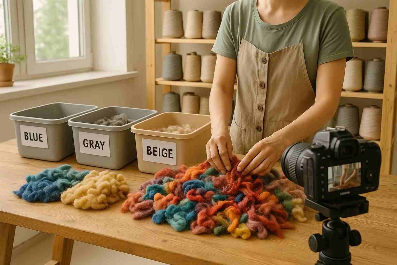 The initial action will be to collect post-consumer wool clothes, as well as pre-consumer industrial scraps. After being collected they are sorted carefully. It is a very crucial stage in which the separation of items by color and fiber content is used to guarantee the quality of the end product.
